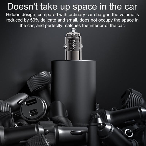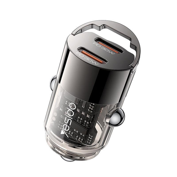 Yesido Y69 PD30W Dual USB-C / Type-C Zinc Alloy Mini Car Charger(Metal Grey)