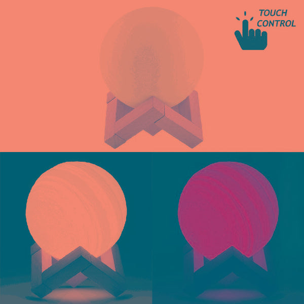 10cm Touch Control 3D Print Jupiter Lamp, USB Charging 2-Color Changing Energy-saving LED Night Light with Wooden Holder Base