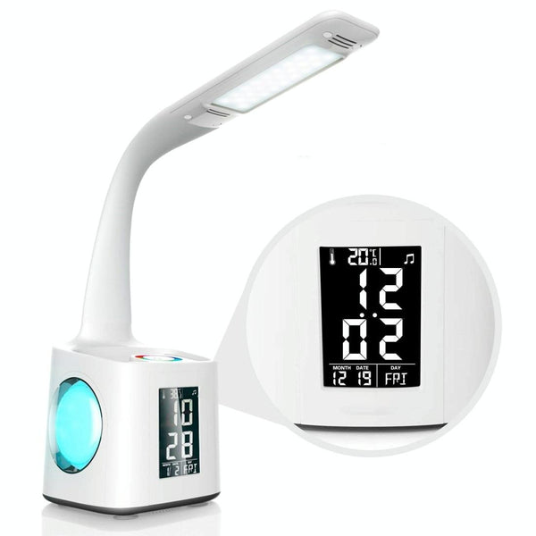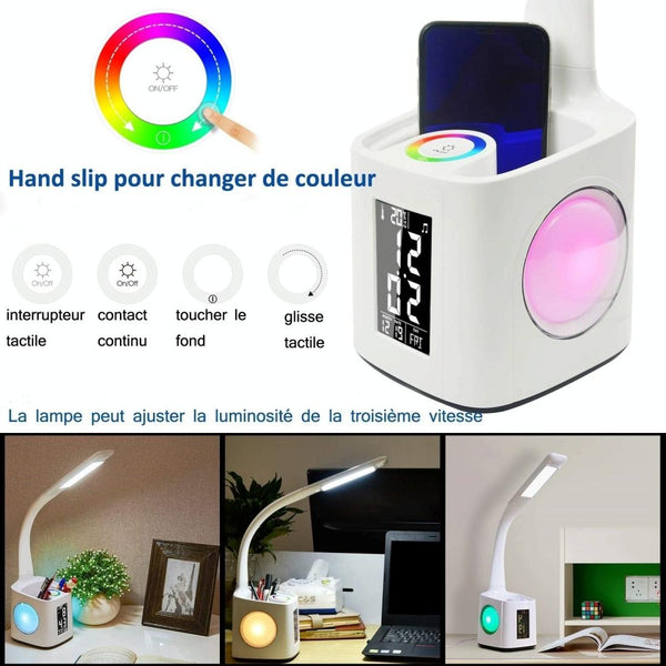 10W Touch Control 3-speed Adjustment Light DimmableEye Protection Table Lamp Coloured Night Light with Pen Holder & Alarm Clock