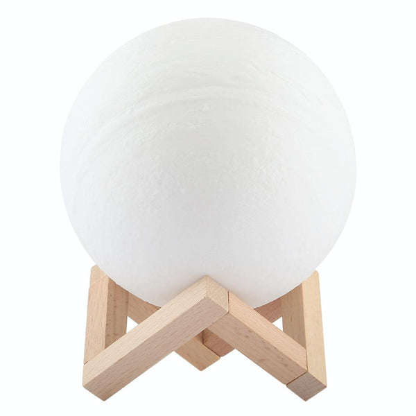 15cm Patted 3D Print Jupiter Lamp, USB Charging 7-Color Changing Energy-saving LED Night Light with Wooden Holder Base