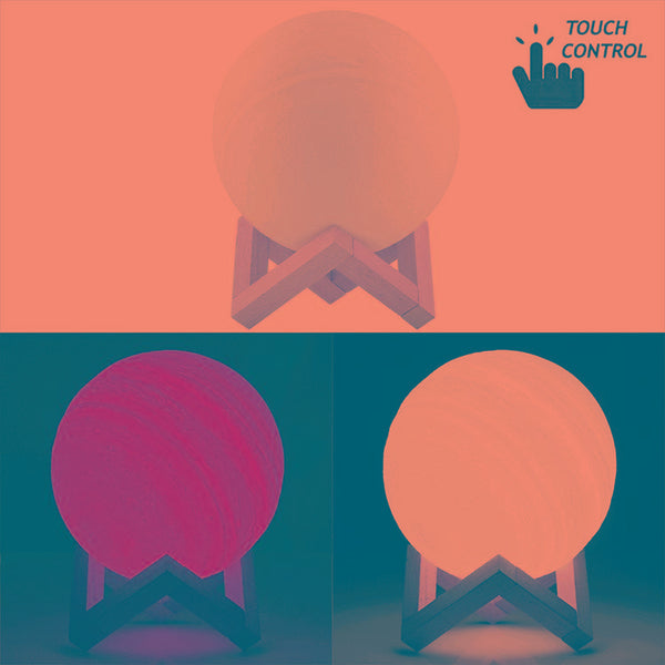 15cm Touch Control 3D Print Jupiter Lamp, USB Charging 2-Color Changing Energy-saving LED Night Light with Wooden Holder Base