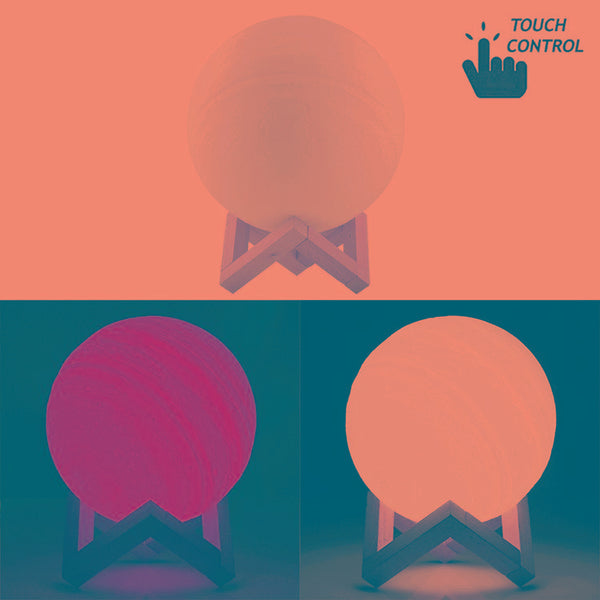 18cm Touch Control 3D Print Jupiter Lamp, USB Charging 2-Color Changing Energy-saving LED Night Light with Wooden Holder Base