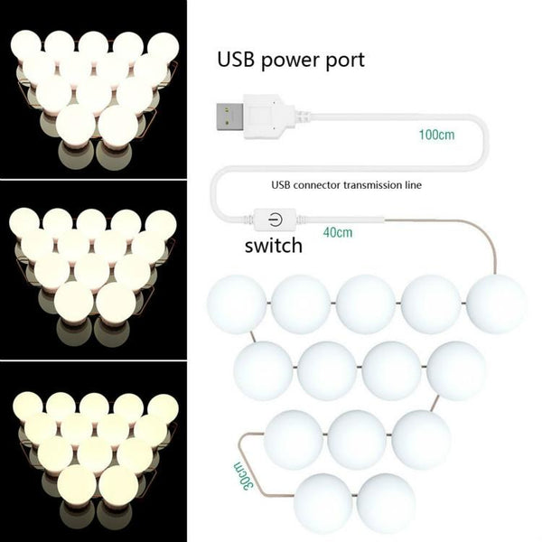 2 LEDs Mirror Front Light Dimmable Makeup Mirror USB Touch Control Light