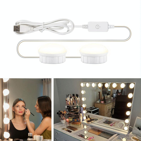 2 LEDs Mirror Front Light Dimmable Makeup Mirror USB Touch Control Light(White Light)