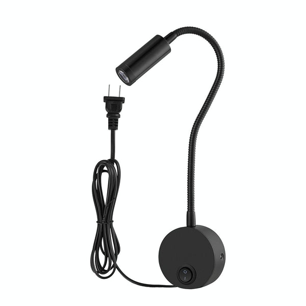 3W Black Shell Flexible Goose Neck White Light LED Reading Lamp Light , 160 LM 3000-3200K Hose Spotlight Lamp Wall Mount Light Wall Sconce Lamp, Got the CE / FCC Certification, Goose Neck Length: 30cm, US/EU Plug, Default Delivery US Plug