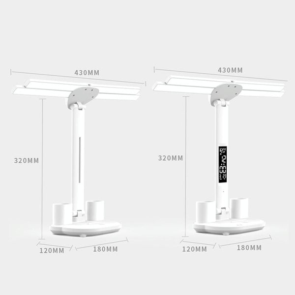 4-head Desk Lamp Foldable Reading Lamp 3-gear Color Adjustment, Spec: Charging Fan Clock Model