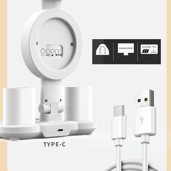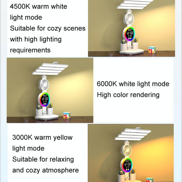 4 Heads Horizontal LED Eye-Care Table Lamp Children Study Desktop Reading Light With Pen Holder, Style: Fan Clock Rechargeable 3200mAh