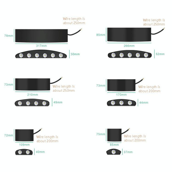 12. Size: about 8.5x7.5 cm for 2LEDs, about 10.9x7.2 cm for 4LEDs, about 17x7.3 cm for 6LEDs, about 21x7.3 cm for 8LEDs, about 26.6x8.5 cm for 10LEDs, and about 31.7x7.8 cm for 12LEDs, 2/4/6LEDs is about 20 cm long, 8/10/12LEDs is about 25 cm long