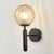 6102 Round Glass LED Wall Light Hotel Bedroom Bedside Living Room, Power source: 12W Three-color Light(Black Striped Amber Lampshade)