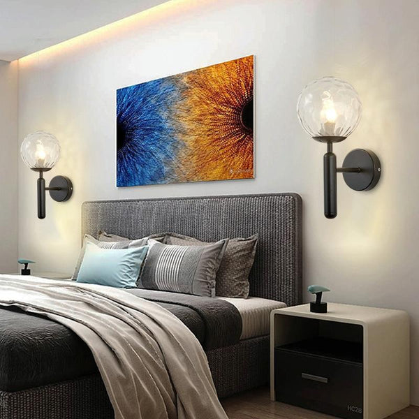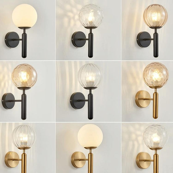 6102 Round Glass LED Wall Light Hotel Bedroom Bedside Living Room, Power source: 5W White Light(Copper Topic Striped Lampshade)