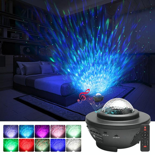 8W USB Charging Music Starry Sky Water Texture Light Atmosphere Lamp with Remote Control (Black)