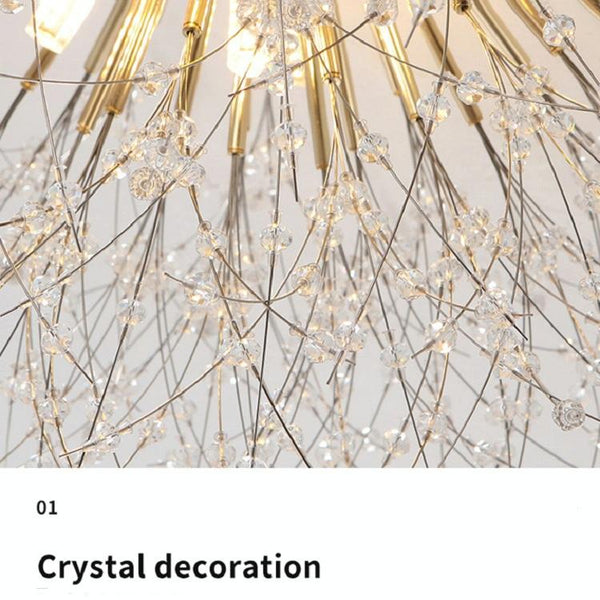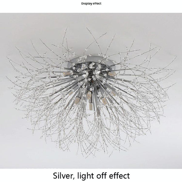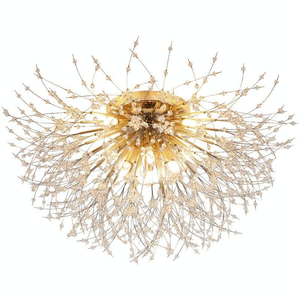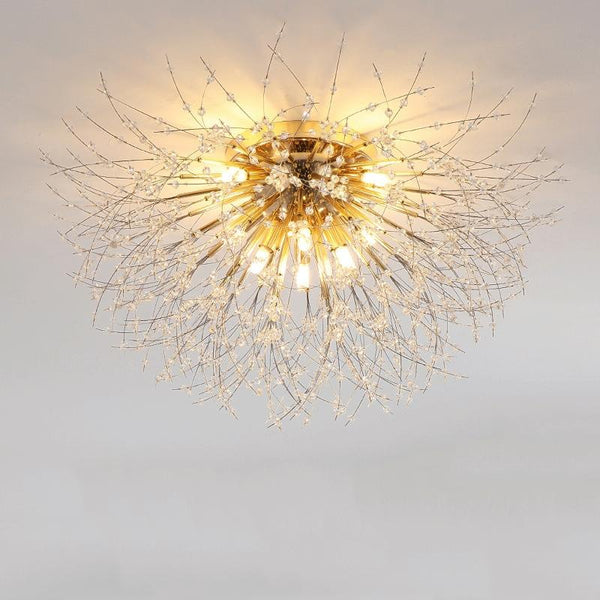 Bedroom Crystal Ceiling Lamp Creative Dandelion Living Room Lamp Dining Room Lamp, Style:Golden (70x38cm, 8 Heads)(Warm Light)