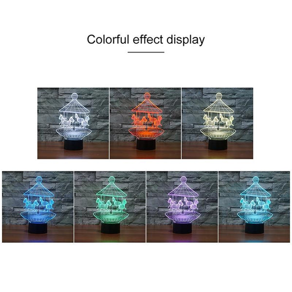 Carousel Black Base Creative 3D LED Decorative Night Light, USB with Touch Button Version