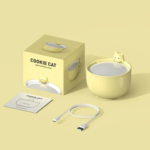 Cat Alarm Clock Night Light 2W LED Rechargeable Adjustable Children Bedroom Bedside Light(Pink)