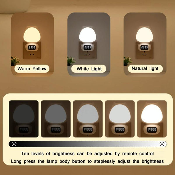 Cat Rotatable Remote Control Night Light with Time Display, CN Plug(3-Colors Light)