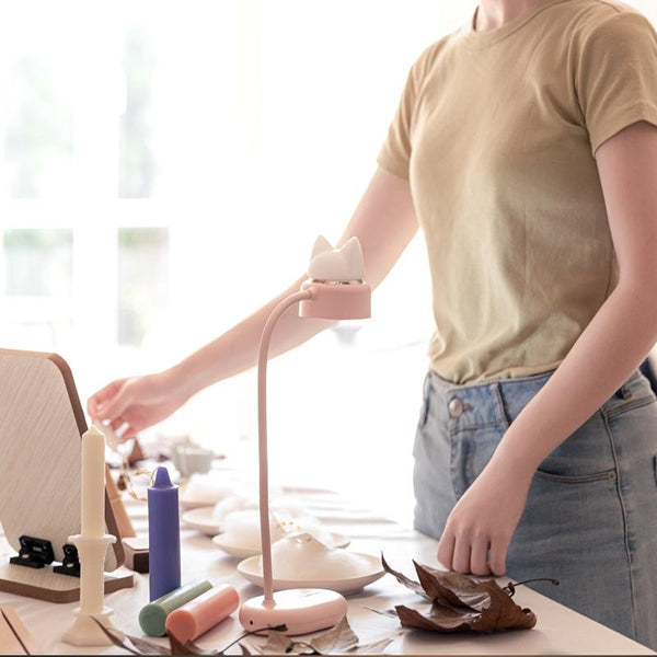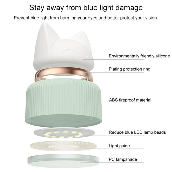 Cat Shape Double Light Source Design LED Desk Night Lamp, Support 3 Brightness Control (White)