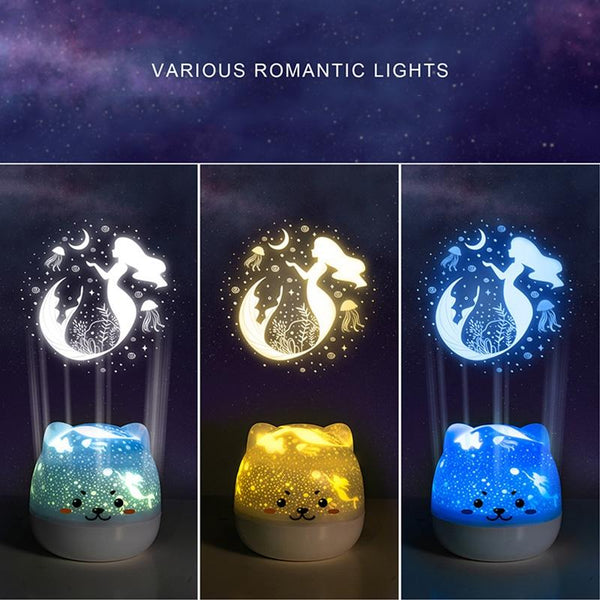 Children Starry Sky Projection Lamp USB Rotating LED Night Light Music Box Chargeable Sleeping Light(Greedy Cat)