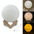 Customized Patted 3-color 3D Print Lamp USB Charging Energy-saving LED Night Light with Wooden Holder Base, Diameter:20cm