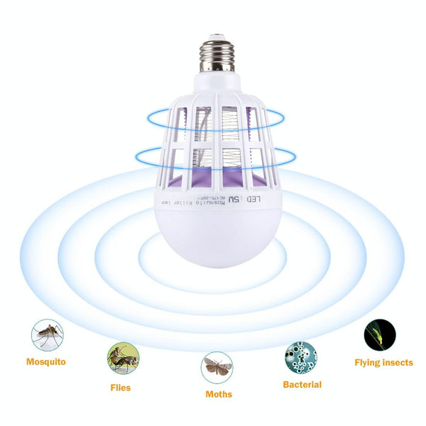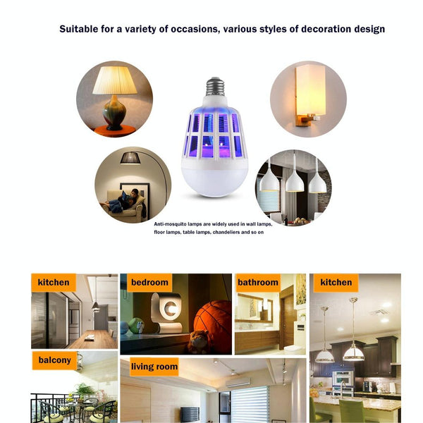 E27 15W White Light + 365 NM Purple Light Mosquito Killer Bulb Lamp, Fly Pest Insects Reject Zapper LED Ball Steep Light, AC 175-265V