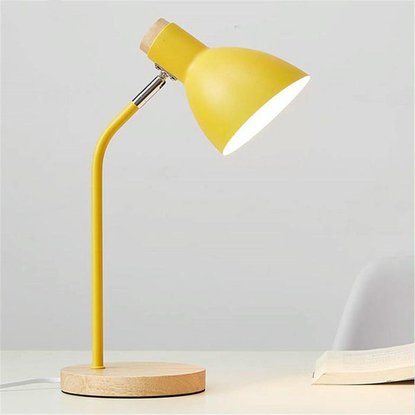 E27 Button Switch Wood Table Lamp Metal Shade Desk Light Bedside Reading Book Light Home Decor, Light Source:9W Led White Light(Yellow)