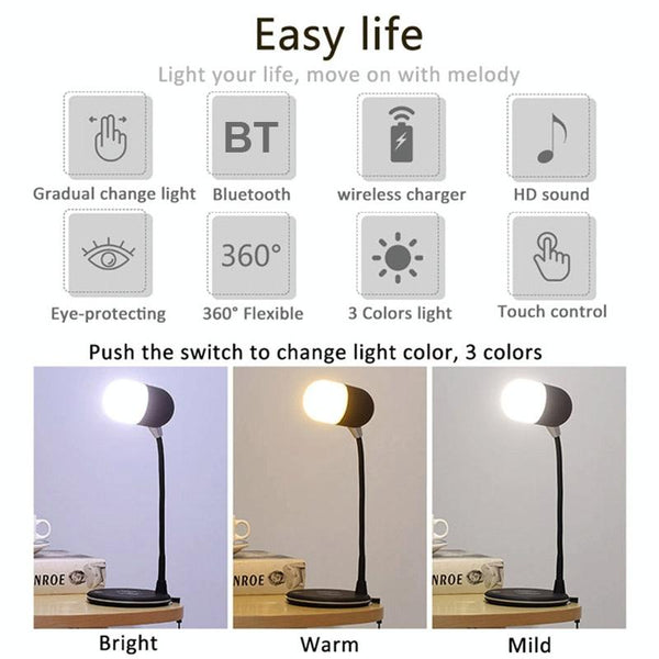 L4 Multifunctional Wireless Charging LED Desk Lamp with Bluetooth 5.0 Speaker(White)