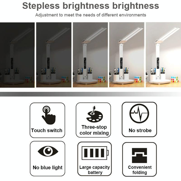 LED Intelligent Digital Display Foldable Desk Lamp, Style: Double Head Charging 2000mAh