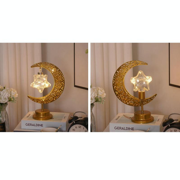 LED Wrought Iron Moon Shape Atmosphere Bedroom Table Lamp(Moon Star With Hook)