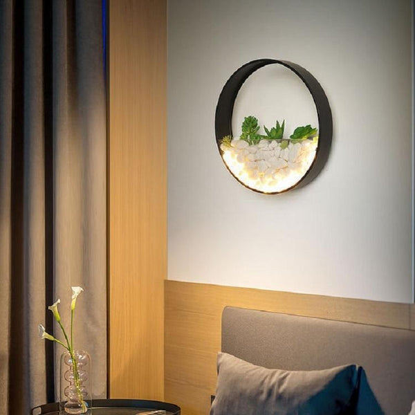 Living Room Background Wall Bedroom Bedside Round Succulent Garden Decorative Wall Lamp, Size:20 x 5 cm(Black)