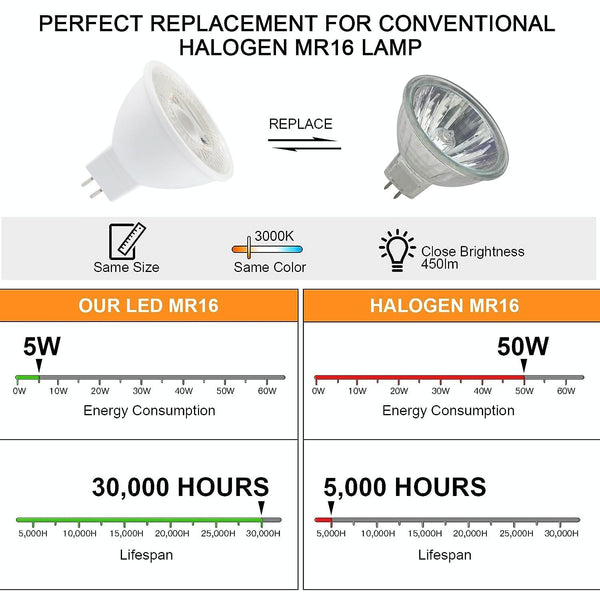 2. Reduce Cost of Changing Light Bulbs: MR16 5W LED bulb with a lifespan over 30,000 hrs, can last very long time, save effort and maintenance costs on changing bulbs frequently.