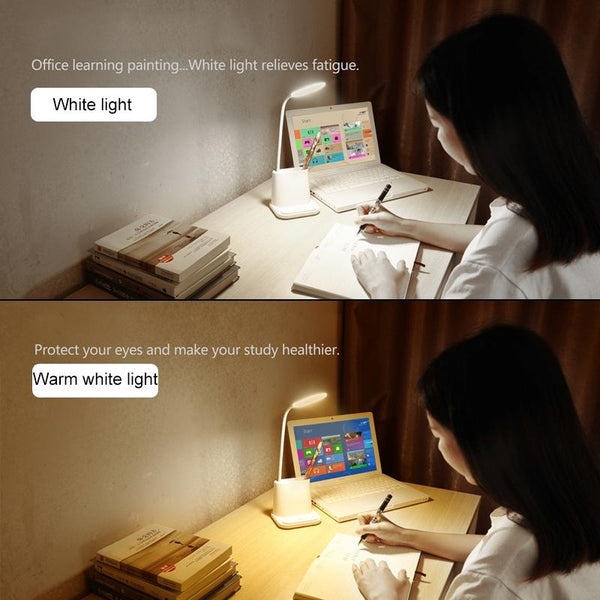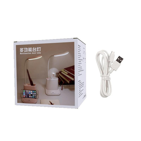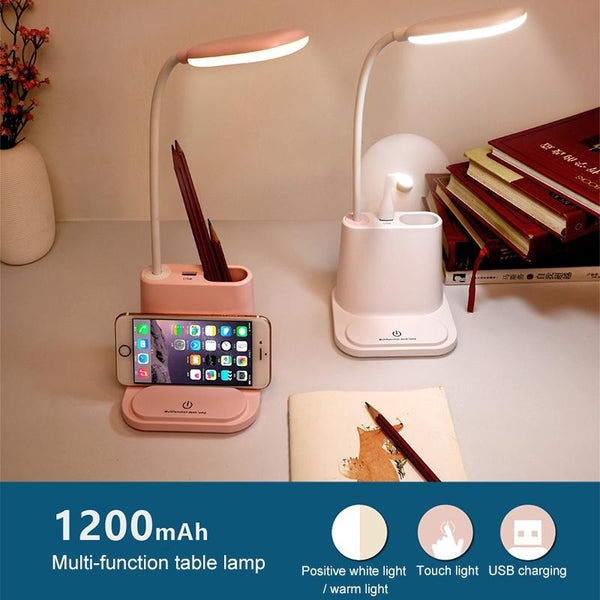 Multi-function Touch Switch USB Charging LED Desk Lamp with Phone Holder & Pen Holder, White Light & Warm White Two Modes LED Night Light, Support USB Output (White)