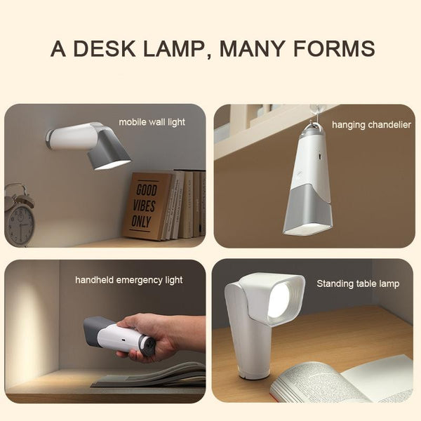1. A desk lamp with multiple forms, including mobile wall lamp/hanging camping lamp/emergency flashlight/vertical desk lamp, meeting the needs of multiple scenarios.