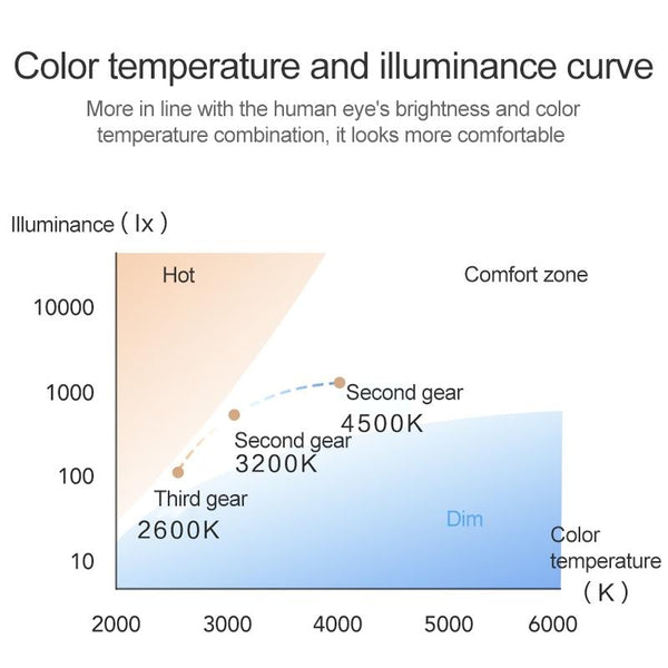 Color temperature range: 4500K, 3200K, 2600K