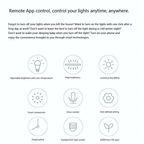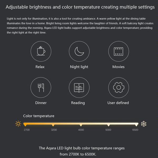 Original Xiaomi Youpin Aqara 9W E27 2700K-6500K 806LM LED Light Bulb, HomeKit APP Control(White)