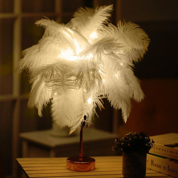 Ostrich Feather Table Lamp Wrought Iron Night Light LED Copper Wire Lamp(Yellow)