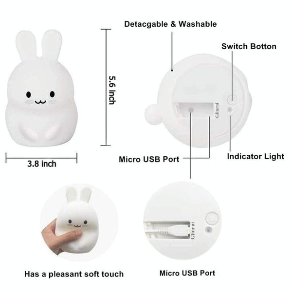 Rabbit Silicone Pat Night Light Children Gift Color Changing Lamp, Specification: Charging