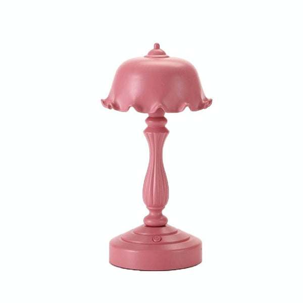 Retro Charging Table Lamp Bedroom Bed LED Eye Protection Light(LD04 Flower Hat Rose Red)