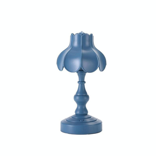Retro Charging Table Lamp Bedroom Bed LED Eye Protection Light(LD05 Lotus Gray Blue)