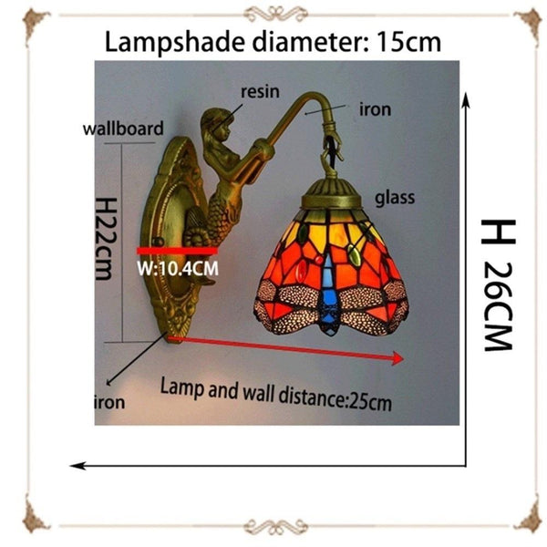 Retro Stained Glass Living Room Dining Room Bedroom Bar Club Aisle Wall Lamp (US Plug)