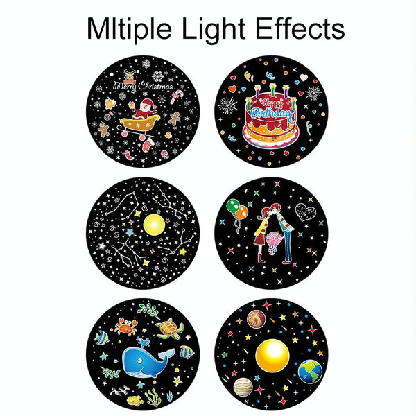 -Direct plug-in version: projection lamp, 6 types of side projection films, 6 types of top projection films, USB charging cable, manual, certificate