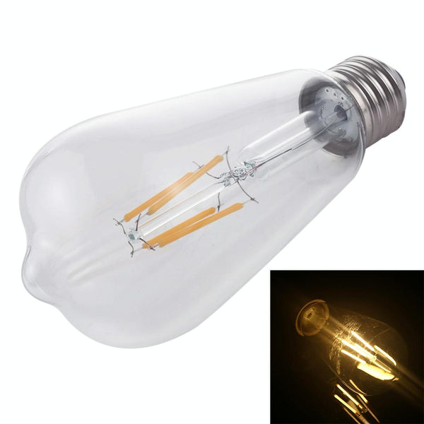 ST64 E27 4W 4 LEDs 600 LM 3000K Retro Dimming LED Filament Light Bulb Energy Saving Light, AC 220V(Warm White)