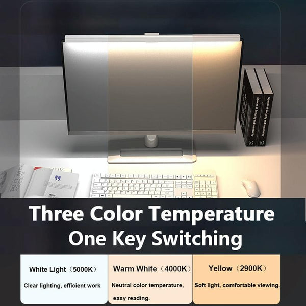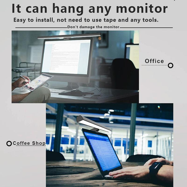 2. Straight LED light source, wide irradiation range, clear and no dead angle, the lamp body using tilt design, directional illumination of the keyboard and documents in front of the screen