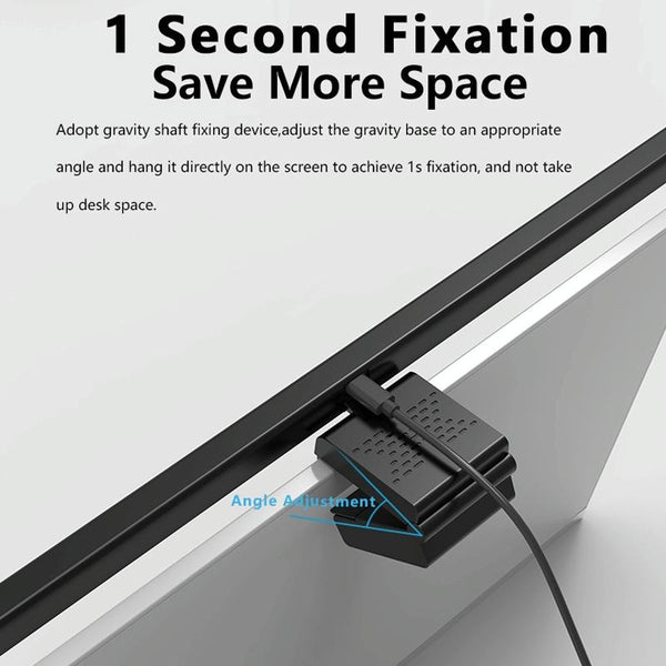 3. Using gravity pivot fixture, with the thickness of the screen, the gravity base adjusted to the appropriate angle directly hanging on the screen, does not take up desktop space