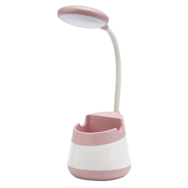 USB Charging LED Desk Light Eye Protection Lamp with Pen Holder and Phone Holder(CS276-1 Pink)