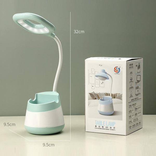 USB Charging LED Desk Light Eye Protection Lamp with Pen Holder and Phone Holder(CS276-1 Yellow)