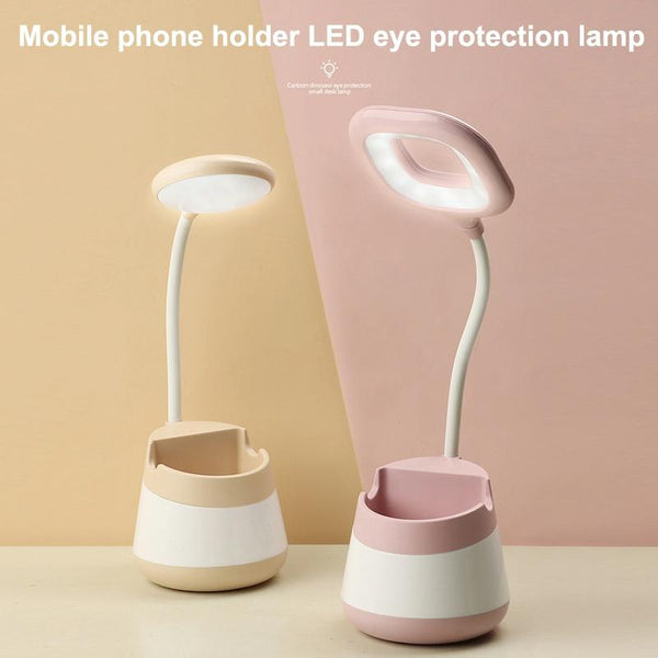 USB Charging LED Desk Light Eye Protection Lamp with Pen Holder and Phone Holder(CS276-3 Yellow)