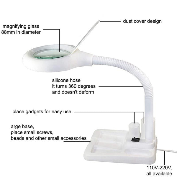 White LED Desk Lamp Desktop Magnifying Glass Work Lamp(GB Plug)