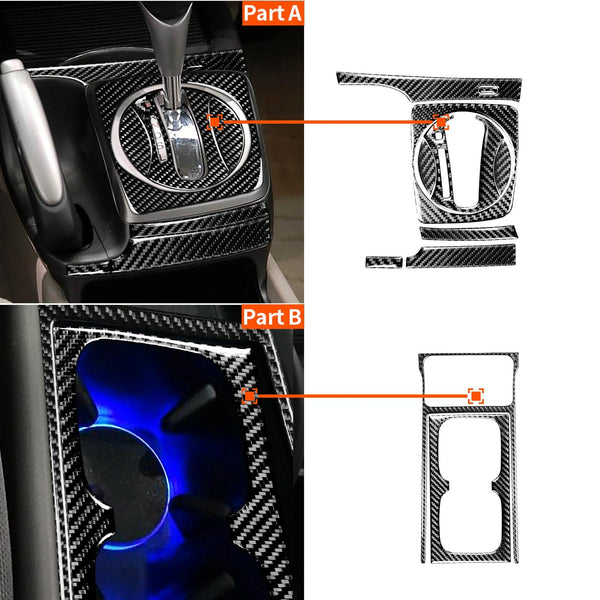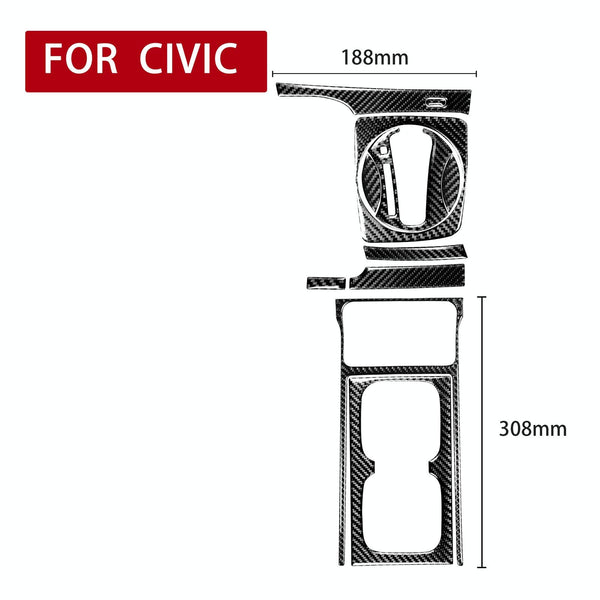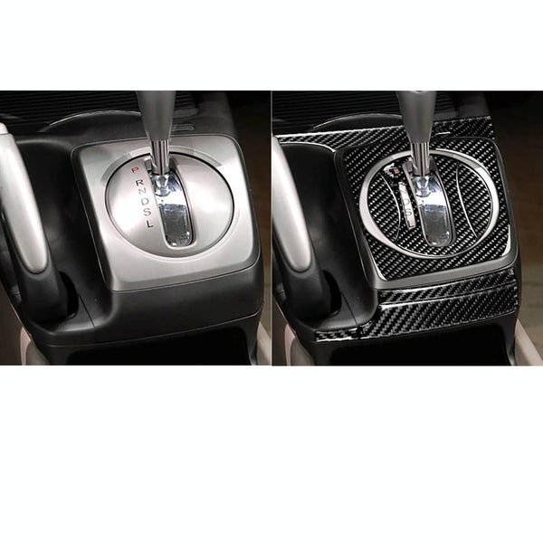 10 in 1 Car Carbon Fiber Automatic Gear + Water Cup Holder Decorative Sticker for Honda Civic 8th Generation 2006-2011, Left Drive