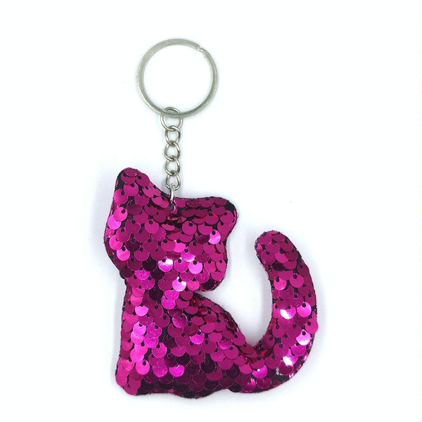 10 PCS PET Sequins Reflective Cat Keychain Bag Car Pendant, Colour: Rose Red 11