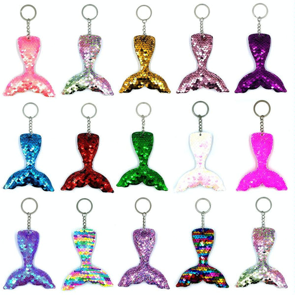 10 PCS Reflective Mermaid Keychain Sequins Mermaid Tail Accessories Car Luggage Pendant(Royal Blue 5)