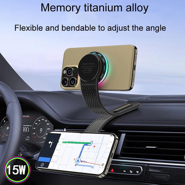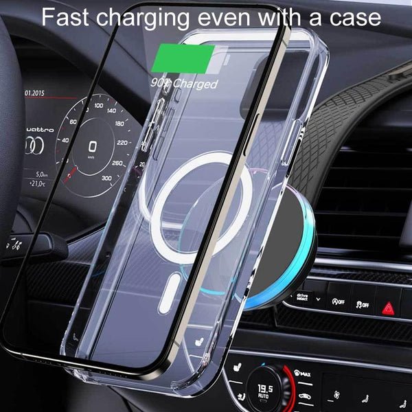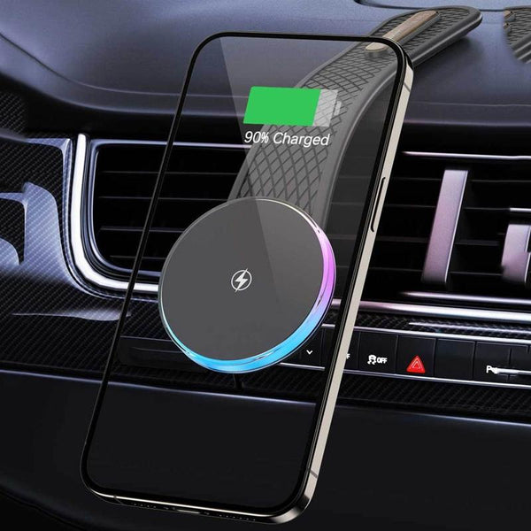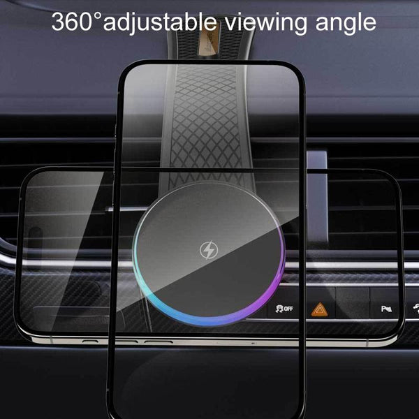 15W Car Magnetic Wireless Charging Cell Phone Holder With Ambient Light